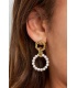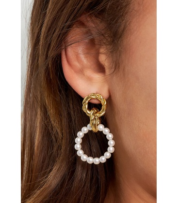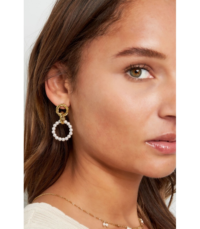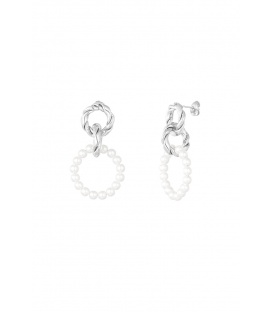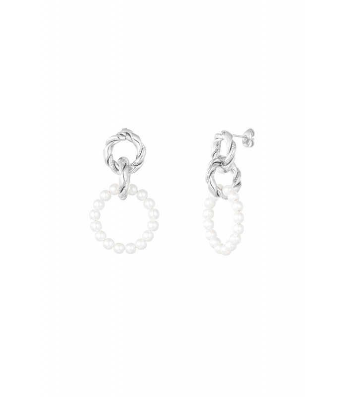 Zilverkleurige gedraaide oorhangers met imitatie parels.