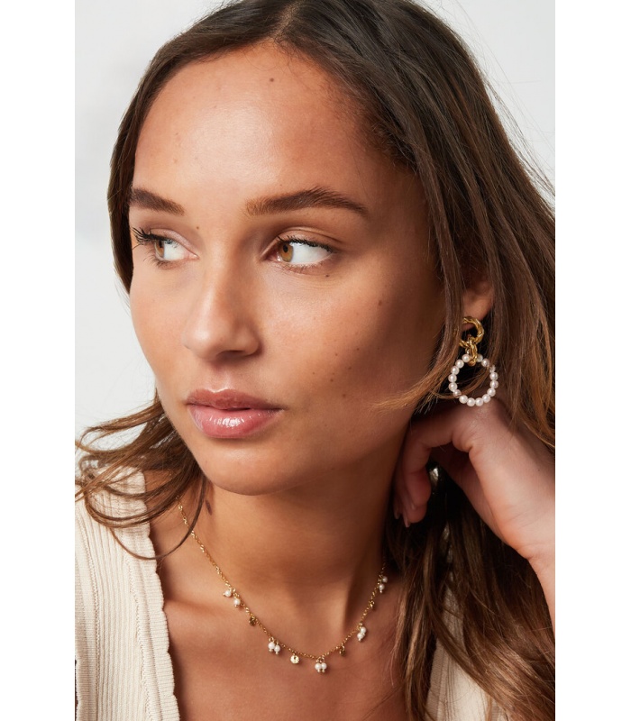 Zilverkleurige oorhangers, verrijkt met imitatie parels voor een tijdloze uitstraling. Deze sieraden zijn de perfecte aanvulling op elke outfit, van casual chic tot avondkledij. Hun gedraaide ontwerp en de schittering van de imitatie parels zorgen voor een opvallende maar verfijnde look.