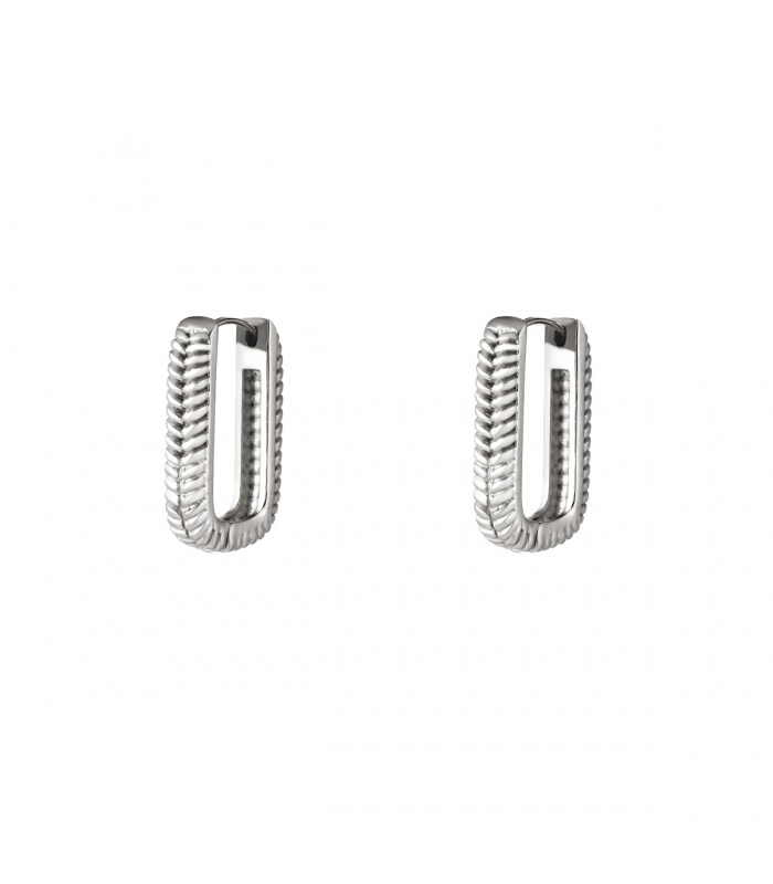 Zilverkleurige geweven rechthoekige oorbellen klein.