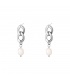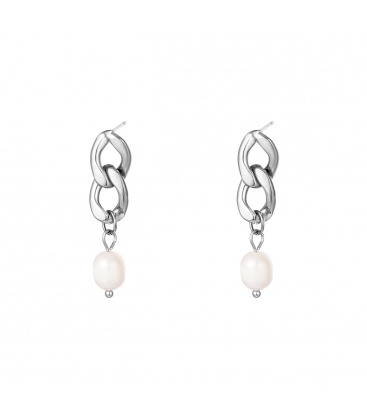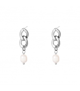 Zilverkleurige ketting oorbellen met zoetwaterparel.