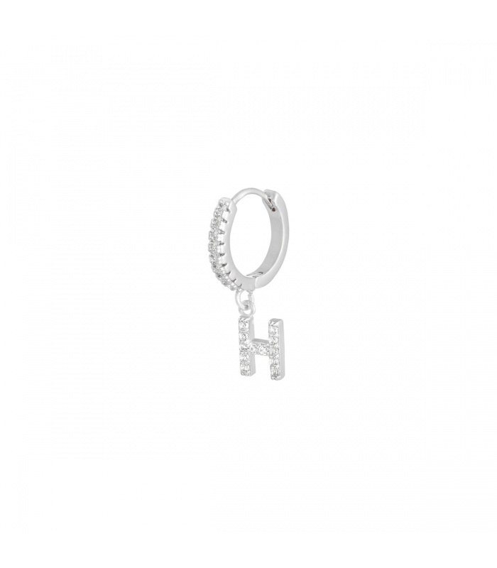 Zilverkleurige oorbel met steentjes en hanger met de letter H
