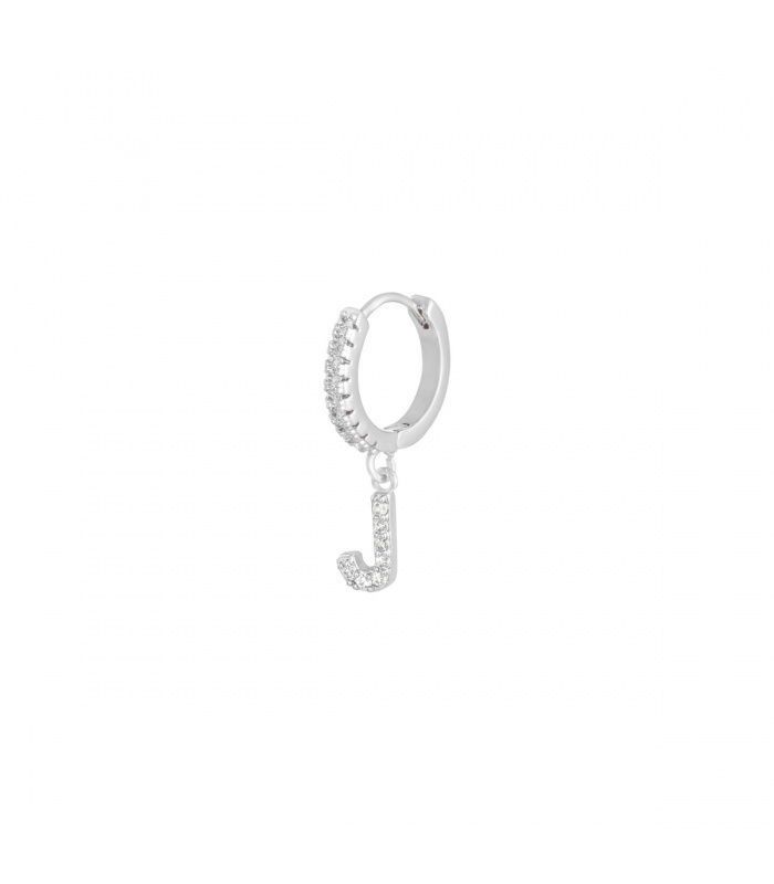 Zilverkleurige oorbel met steentjes en hanger met de letter J