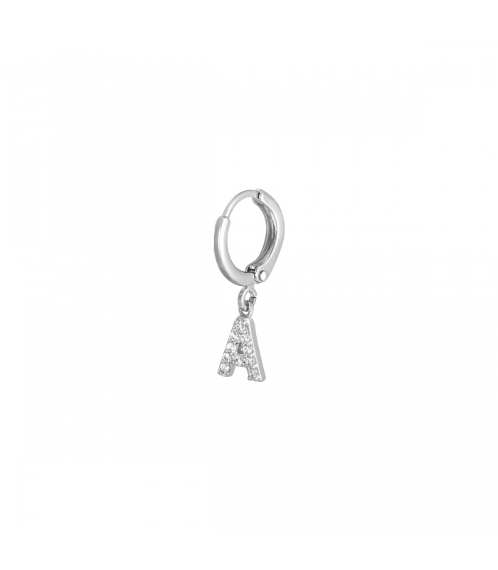 Zilverkleurige oorbel met zirkonia steentjes en initiaal A