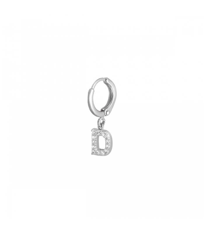 Zilverkleurige oorbel met zirkonia steentjes en initiaal D