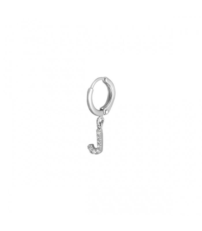 Zilverkleurige oorbel met zirkonia steentjes en initiaal J