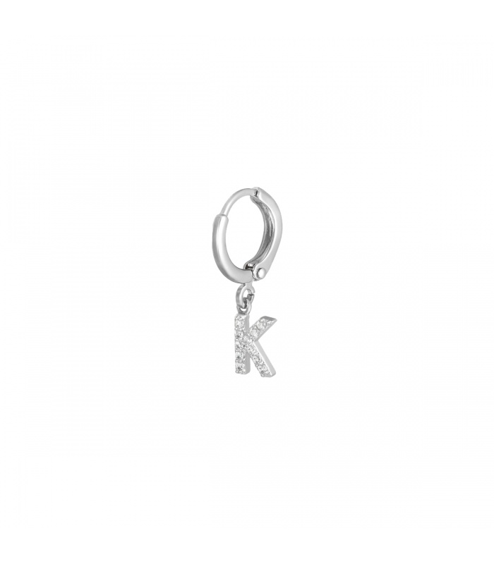 Zilverkleurige oorbel met zirkonia steentjes en initiaal K