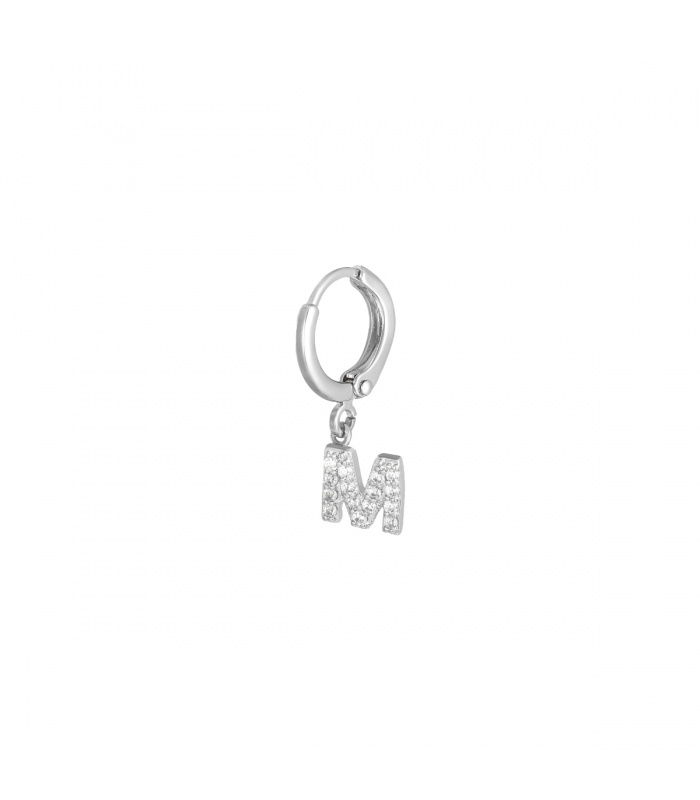 Zilverkleurige oorbel met zirkonia steentjes en initiaal M
