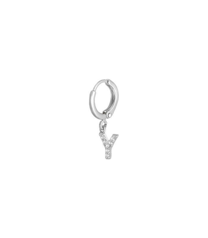 Zilverkleurige oorbel met zirkonia steentjes en initiaal Y