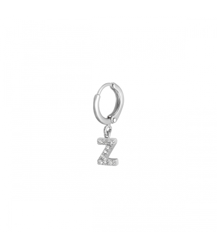 Zilverkleurige oorbel met zirkonia steentjes en initiaal Z