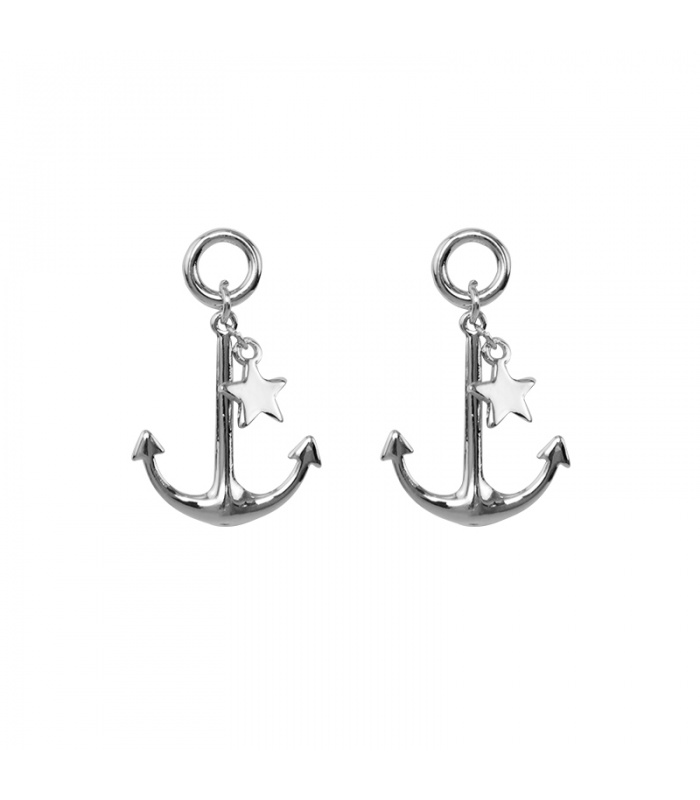 Zilverkleurige oorbellen in de vorm van een anker en sterretje
