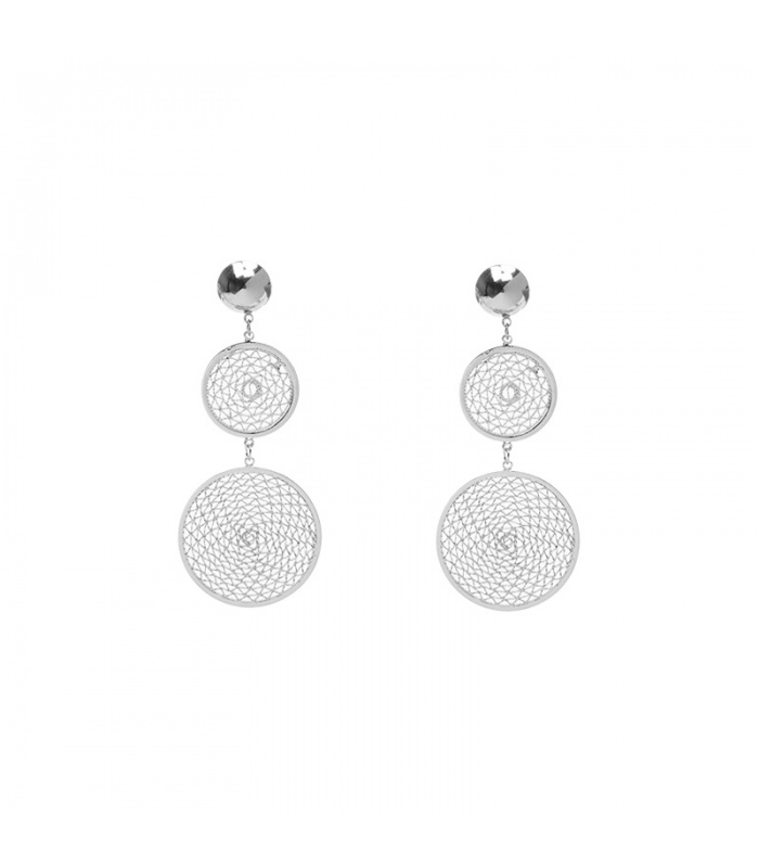Zilverkleurige oorbellen met 2 mooie bewerkte hangers