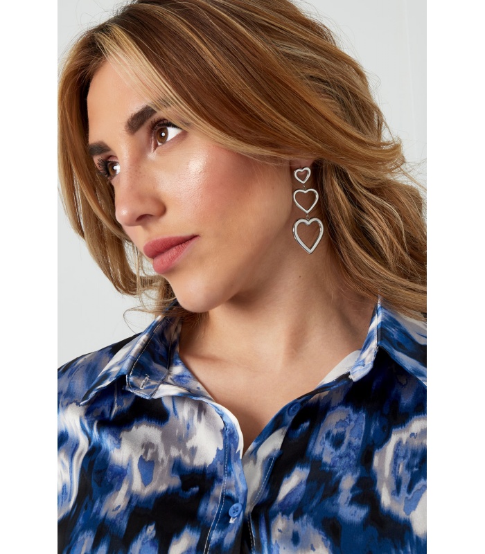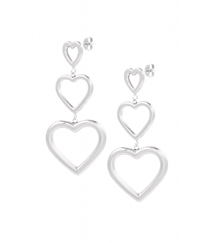 Zilverkleurige oorhangers in de vorm van 3 harten