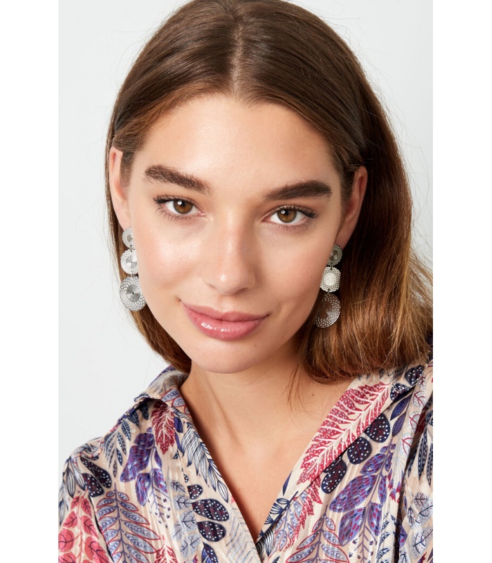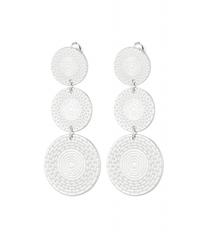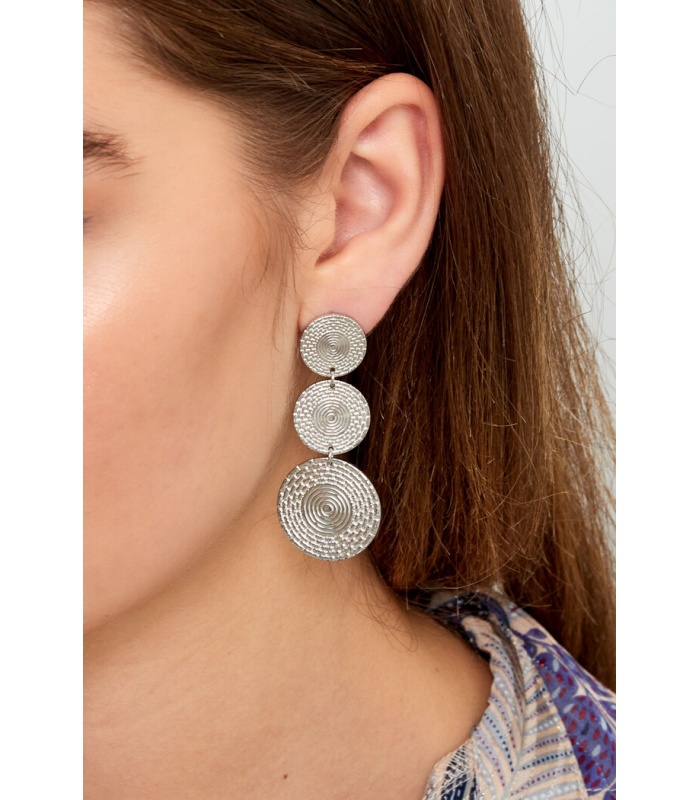 Zilverkleurige oorhangers met 3 bewerkte rondjes