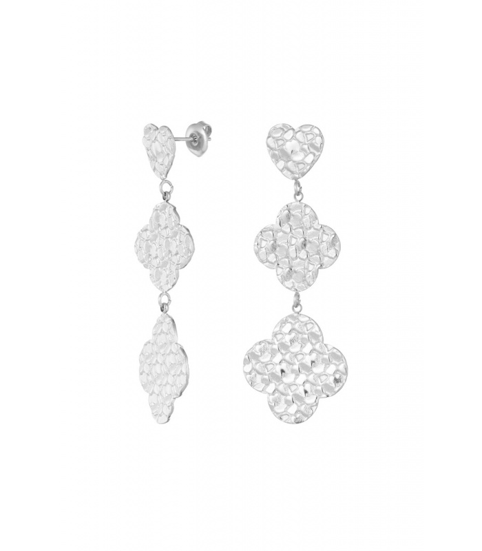 Zilverkleurige oorhangers met klavervier en een hartje