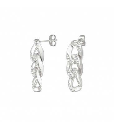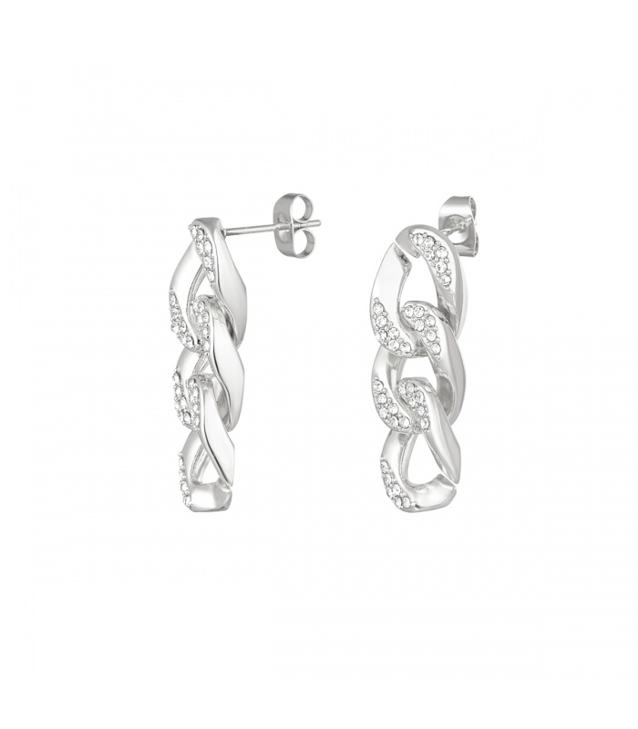 Zilverkleurige oorhangers met schakels en zirconia steentjes.