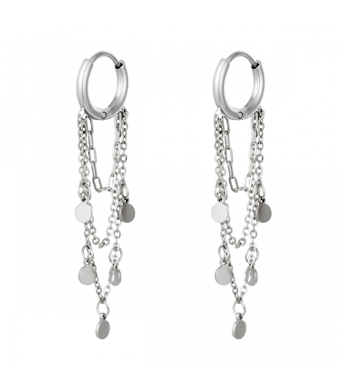 Zilverkleurige oorringen met kettinkjes en platte plaatjes