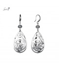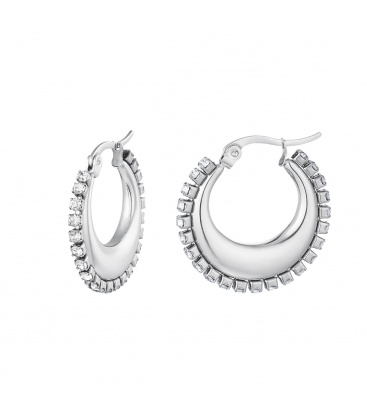 Zilverkleurige ronde oorbellen met kleine steentjes.