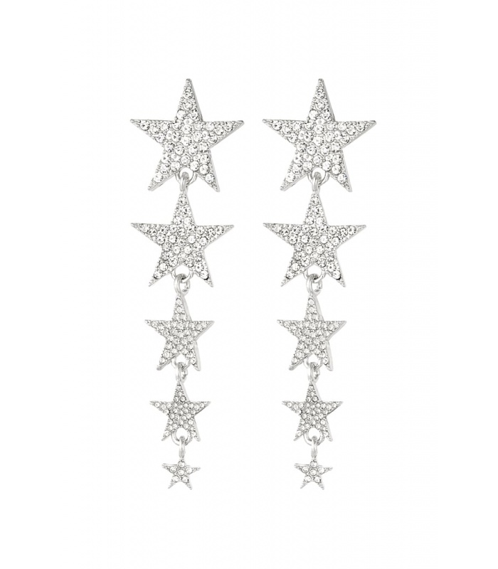 Sterrenoorbellen met glassteentjes voegen een sprankelend accent toe aan elke outfit. De zilverkleurige sterren zijn bezet met fonkelende glassteentjes, wat zorgt voor een elegante en tijdloze uitstraling. Deze oorbellen zijn perfect voor zowel dagelijkse looks als speciale gelegenheden.