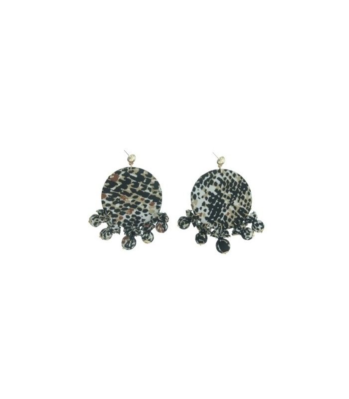 Zwart gekleurde oorbellen met ronde hanger en dierenprint