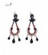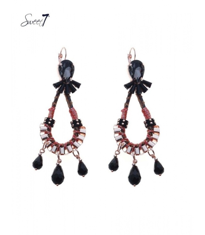 Gekleurde oorhangers met roze koord en zwarte glas kralen.