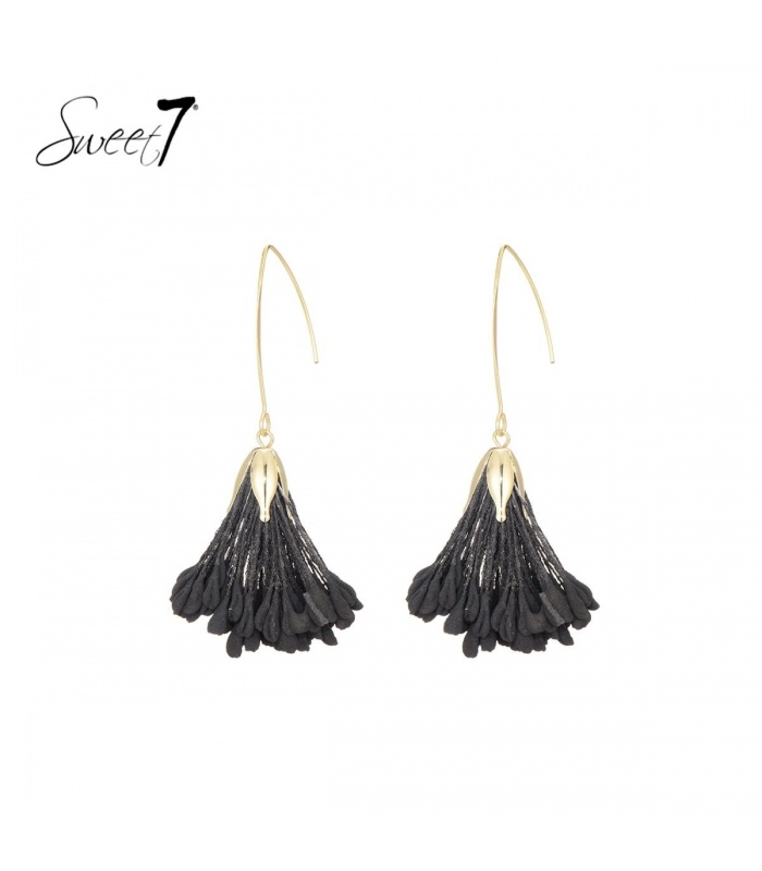 Hoe dragen deze goudkleurige oorhangers met zwart hangende raffia bij aan je stijl? Ze combineren elegantie met een moderne twist, waardoor je altijd opvalt. Het gebruik van hoogwaardige materialen zodat je deze oorbellen keer op keer met plezier kunt dragen.