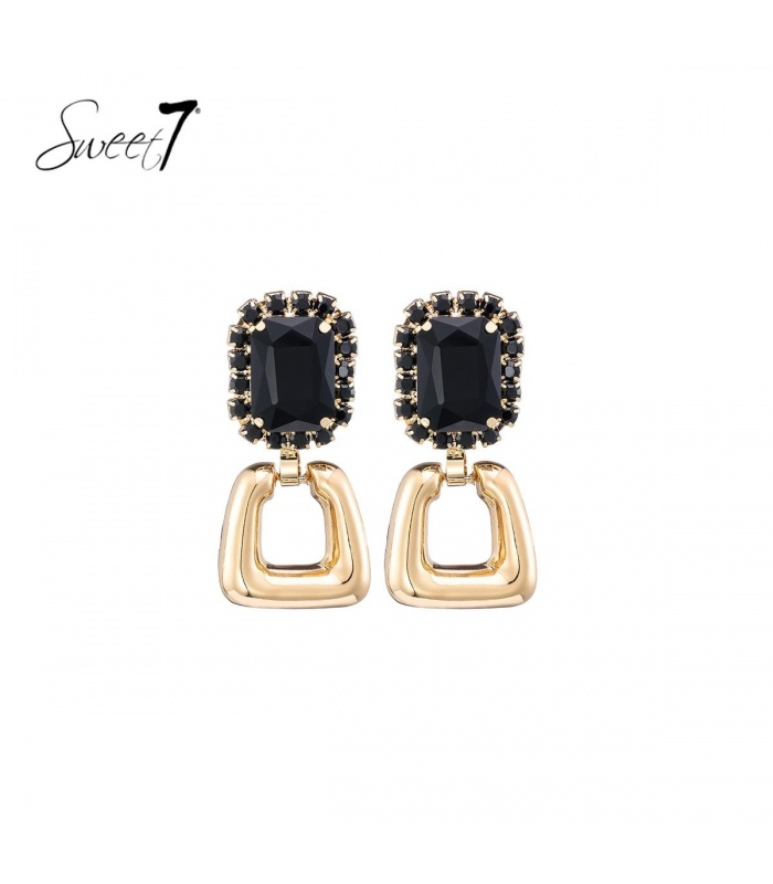 Zoek je een oorbel die elegantie combineert met een trendy uitstraling? Deze goudkleurige oorbellen met zwarte steen bieden precies dat. De rechthoekige kristal is omlijst met fijne zwarte steentjes en hangt boven een goudkleurige hanger. Perfect voor avondlooks én opvallende dag outfit.
