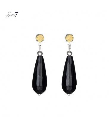 Zwarte oorhangers met een geel steentje in het oorstukje.