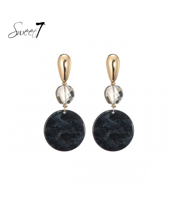 Zwarte oorhangers met een glas kraal en een goudkleurig oor stukje