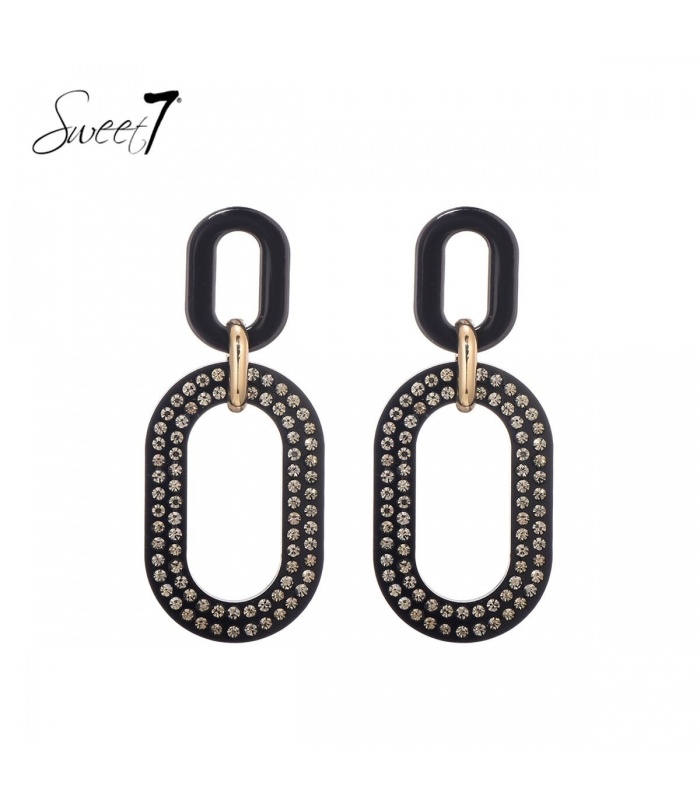 Zwarte oorhangers met een goudkleurig element en strass steentjes