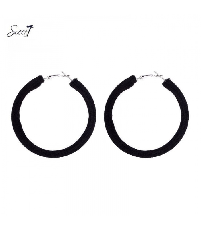 Zwarte oorringen met velours stof.