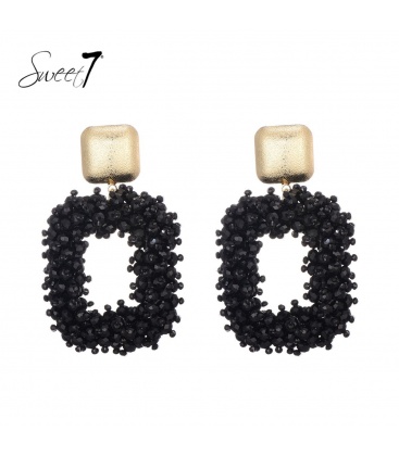 Stijlvolle Zwarte Vierkante Glas Kralen Oorhangers met Goudkleurig Oorstukje