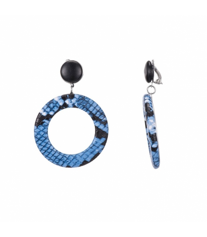 Blauwe oorclips met dieren print met zwart oorstukje.