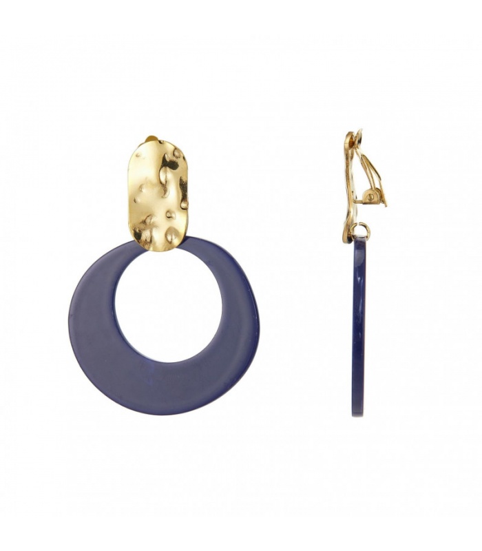 Blauwe oorclips met een goudkleurig bewerkt oor stukje.