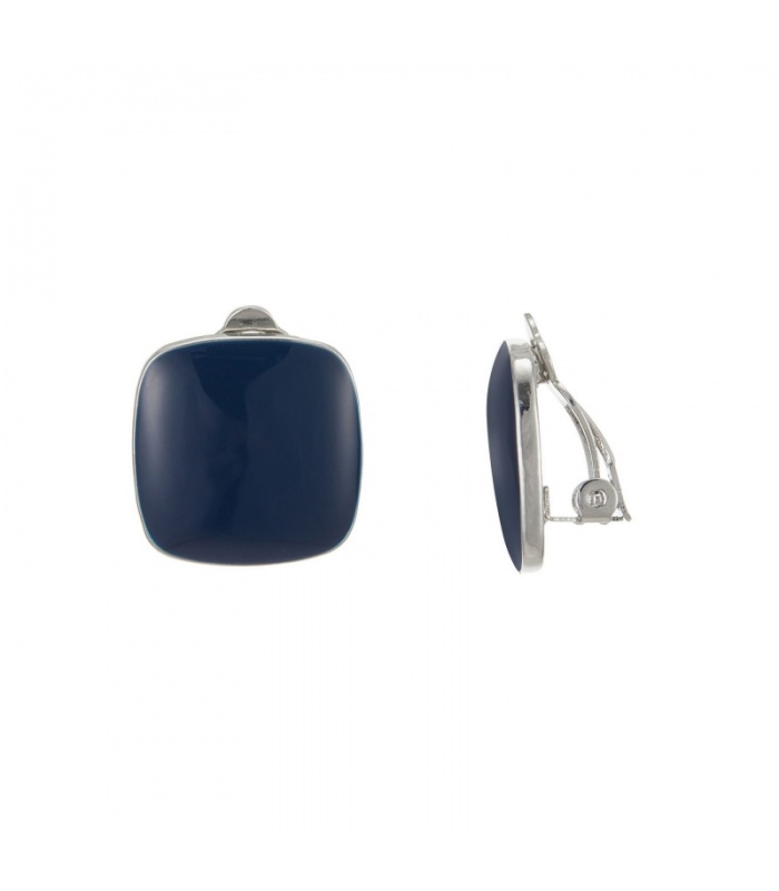 Blauwe vierkante oorclips in zilverkleurige zetting van Belle Miss.