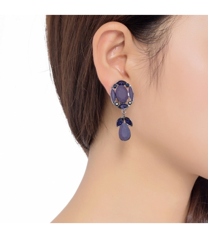 Donkerblauwe oorclips gemaakt van hars met donkerblauwe kristal steentjes