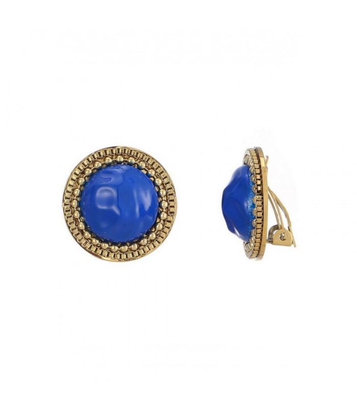 Zoek je een stijlvolle blikvanger die direct opvalt? Deze oorclips met diepe kobaltblauwe steen en goudkleurige rand geven jouw outfit een krachtige upgrade. De ronde vorm maakt ze veelzijdig en makkelijk te combineren met zowel neutrale als kleurrijke looks.
