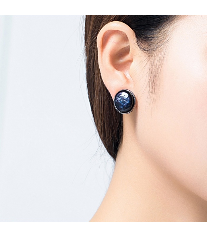 Ovale donkerblauwe oorclips in...