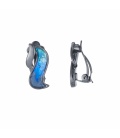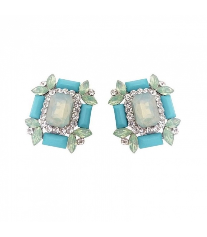 Vierkante blauwe oorclips met facet stenen en heldere strass