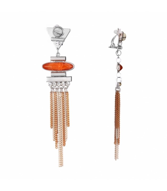 Lange oorclips met bruine steen en strengetjes van Belle Miss.