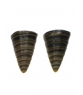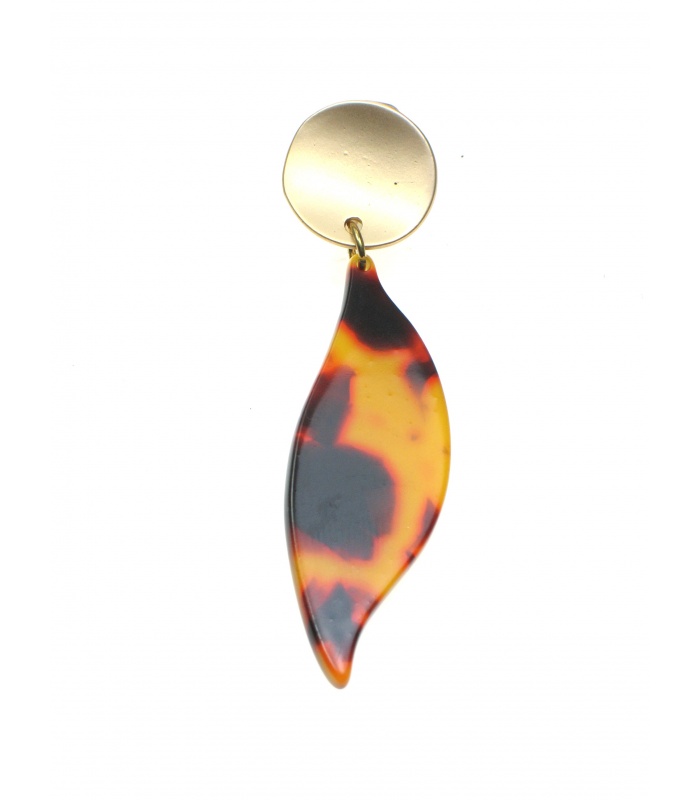 Bruine oorclips met bladvormige hanger en goudkleurig klemmetje.