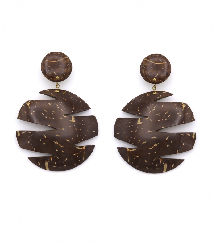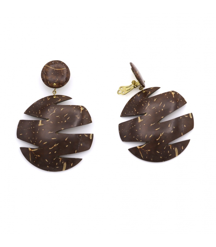 Wat maakt deze oorclips zo uniek? Het natuurlijke materiaal en het uitgesneden design zorgen voor een krachtige, modieuze uitstraling. Deze statement oorbellen van kokosnootschil combineren een aardse look met moderne vormen perfect voor wie houdt van opvallende sieraden met karakter.