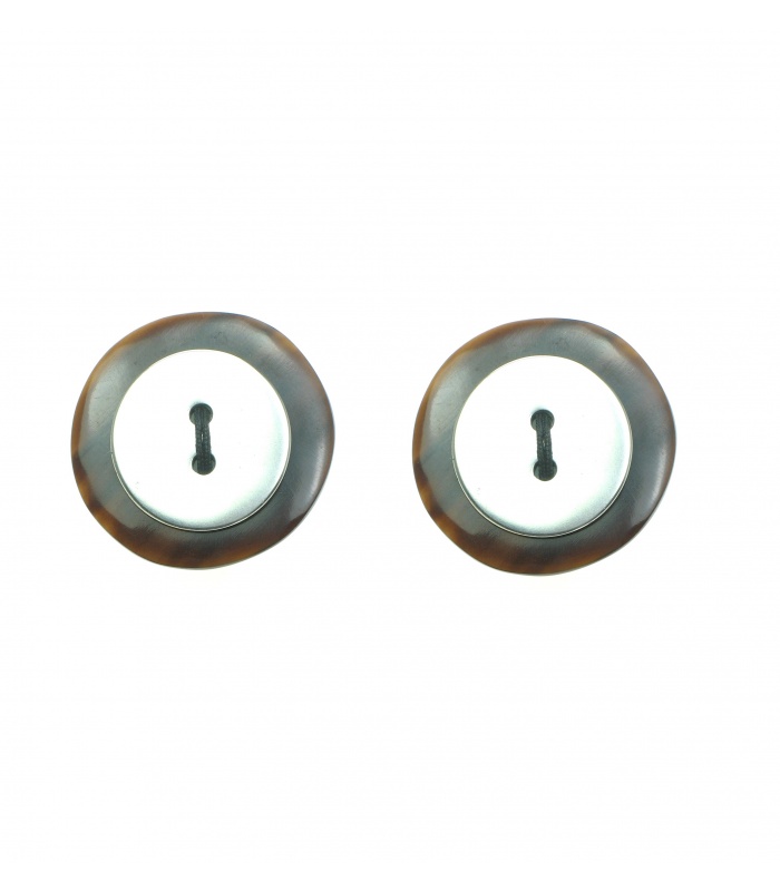 Oorclips gemaakt van hoorn met een metalen knoop.
