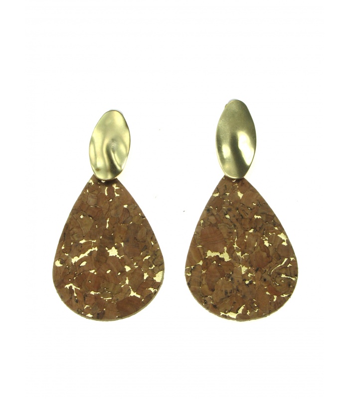 Goudkleurige oorclips met bruingouden ovale hanger van kurkk.