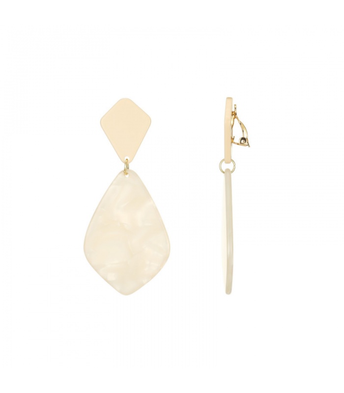 Creme oorclips in de vorm van een ruit en een effen oorstukje.