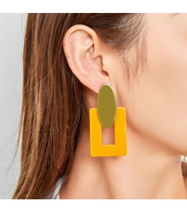 Gele oorclips met een oranje hanger. De lengte van deze oorclip is circa 6.5 cm. Deze klemoorbellen zijn geschikt voor oren zonder gaatjes. De clip oorbellen zijn nikkelvrij. Voorzien van rubbertjes voor het comfortabel dragen van deze oorclips.