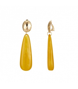 Geel getinte hars oorclips De lengte van deze oorclip is circa 7,5 cm. Deze klemoorbellen zijn geschikt voor oren zonder gaatjes. De clip oorbellen zijn nikkelvrij. Voorzien van rubbertjes voor het comfortabel dragen van deze oorclips.