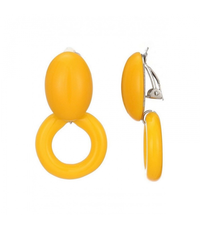 Oorclips zijn een stijlvol alternatief voor traditionele oorbellen. Deze gele oorclips met ronde hanger combineren elegantie met een speelse twist. Perfect voor zowel casual als feestelijke gelegenheden, voegen ze een unieke flair toe aan elke outfit.