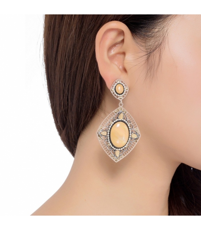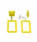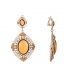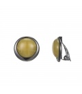 Gele oorclips met steentjes en zilverkleurige rand in de hanger