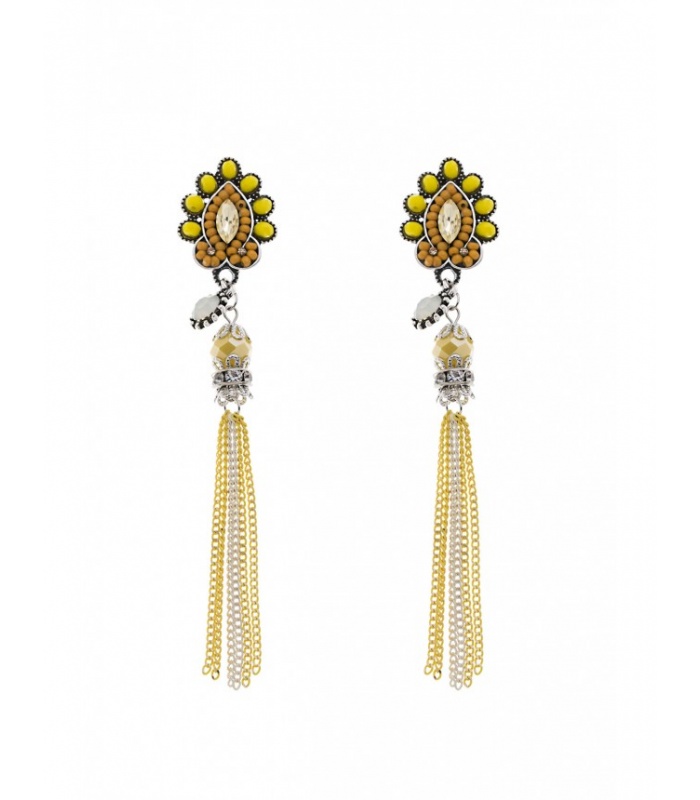 Op zoek naar de perfecte toevoeging aan je sieradencollectie? Ontdek onze prachtige gele oorclips met kraaltjes en kettinkjes! Deze trendy sieraden zijn ideaal voor het toevoegen van een vleugje glamour aan elke outfit.