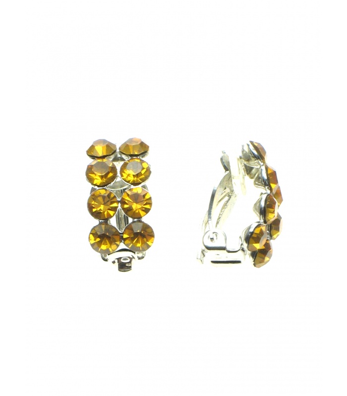 Donker Gele Halfronde Oorclips met Glas Steentjes - Stralende Elegantie voor Je Oren